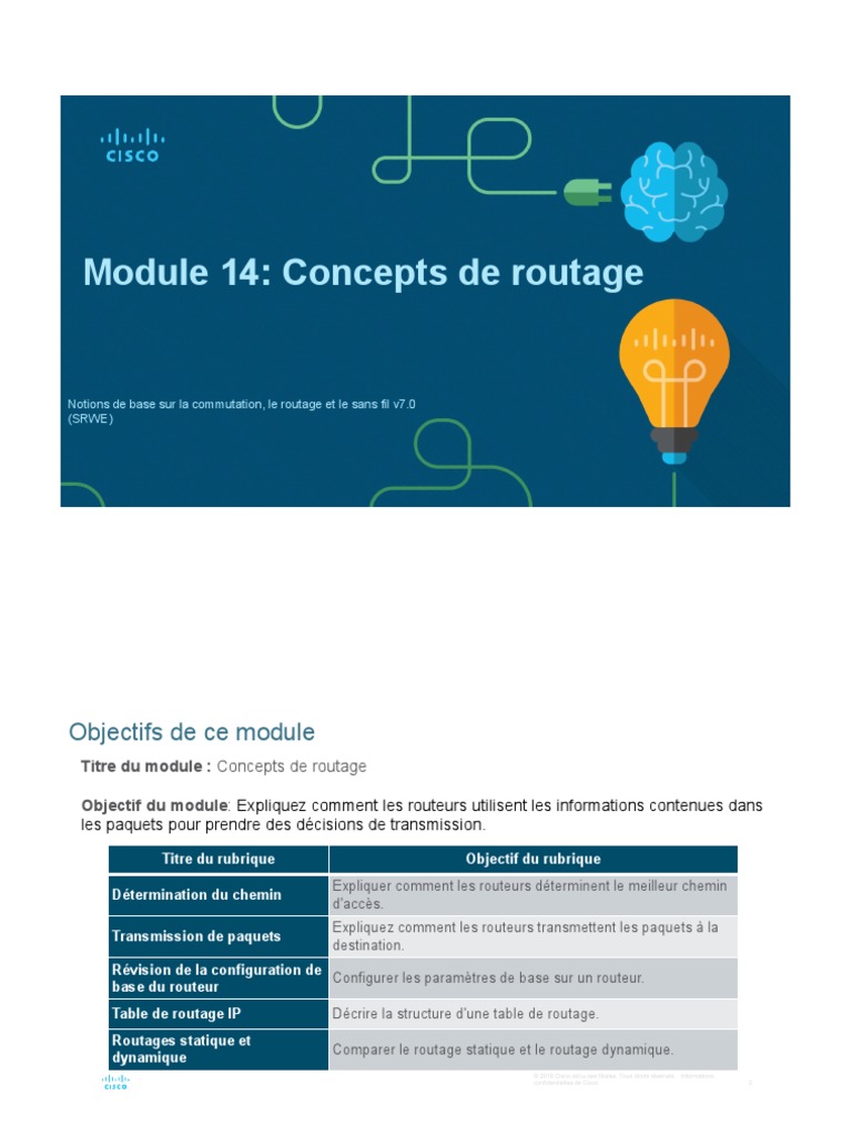 Objectif du module: Expliquez comment les routeurs utilisent les informations contenues dans
