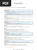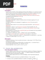 On appelle probabilité définie sur P (Ω) (ensemble des parties de Ω), toute application p :