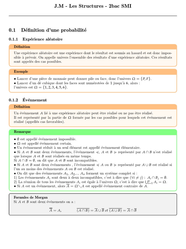 A = A, ( A ∩ B) = A ∪ B et ( A ∪ B) = A ∩ B