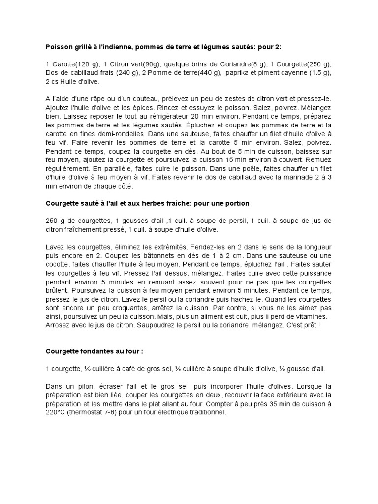 1 pavé de cabillaud frais, 100g de courgettes, 100g de tomate, 100g de poivrons, ¼