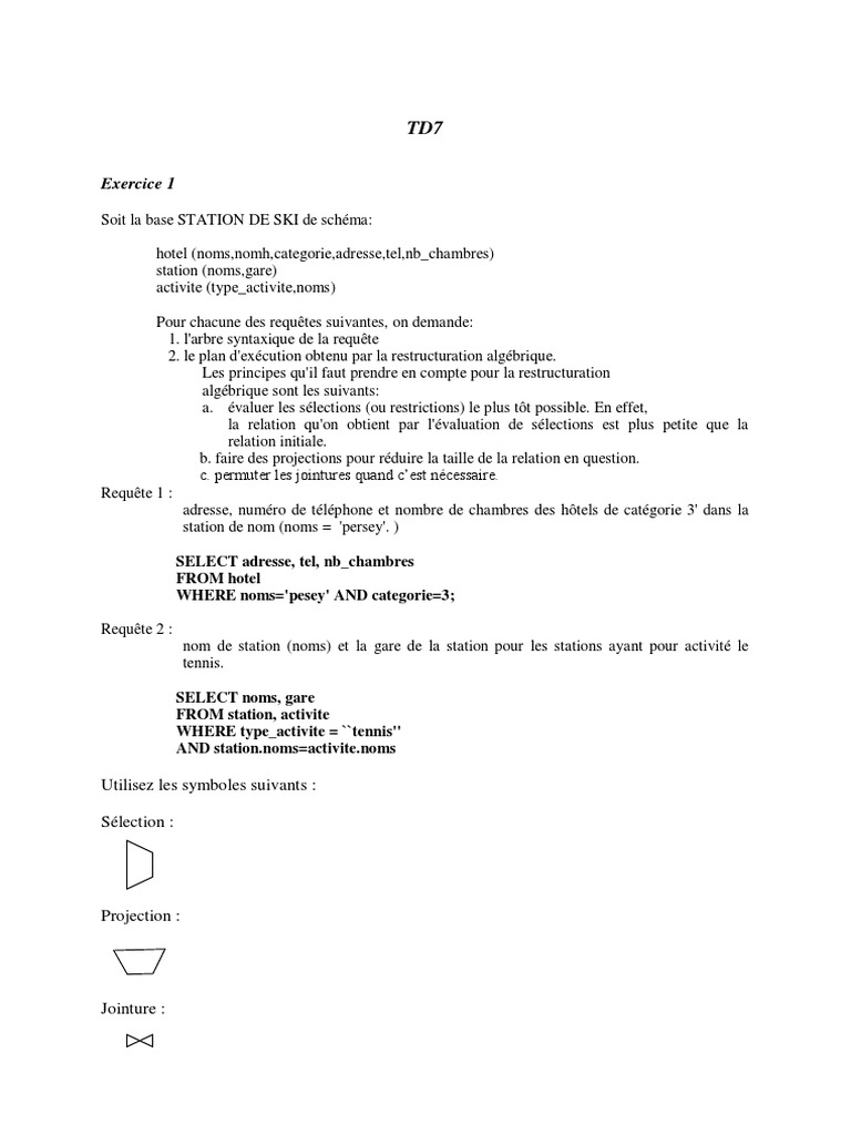 Proposez un arbre d’opérateurs de l’algèbre relationnelle optimisé pour l’exécution de cette