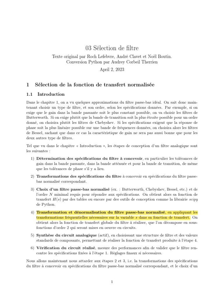 filtre passe-bas normalisé répondant aux spécifications. L’étape 4 qui consiste à transformer et