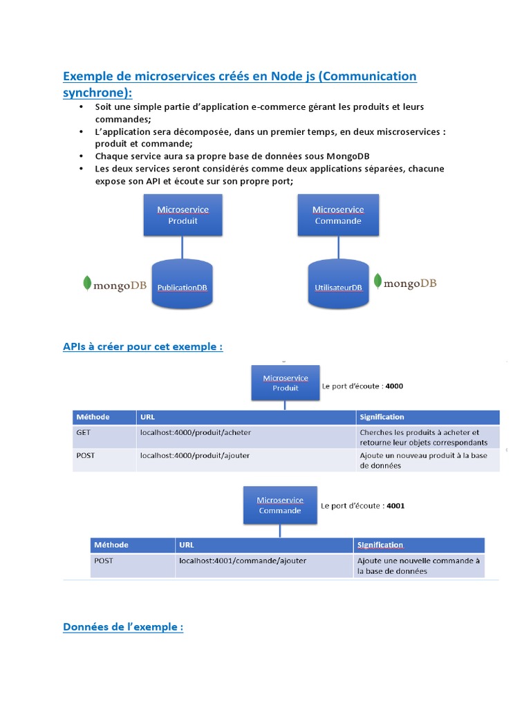 • L’application sera décomposée, dans un premier temps, en deux miscroservices :