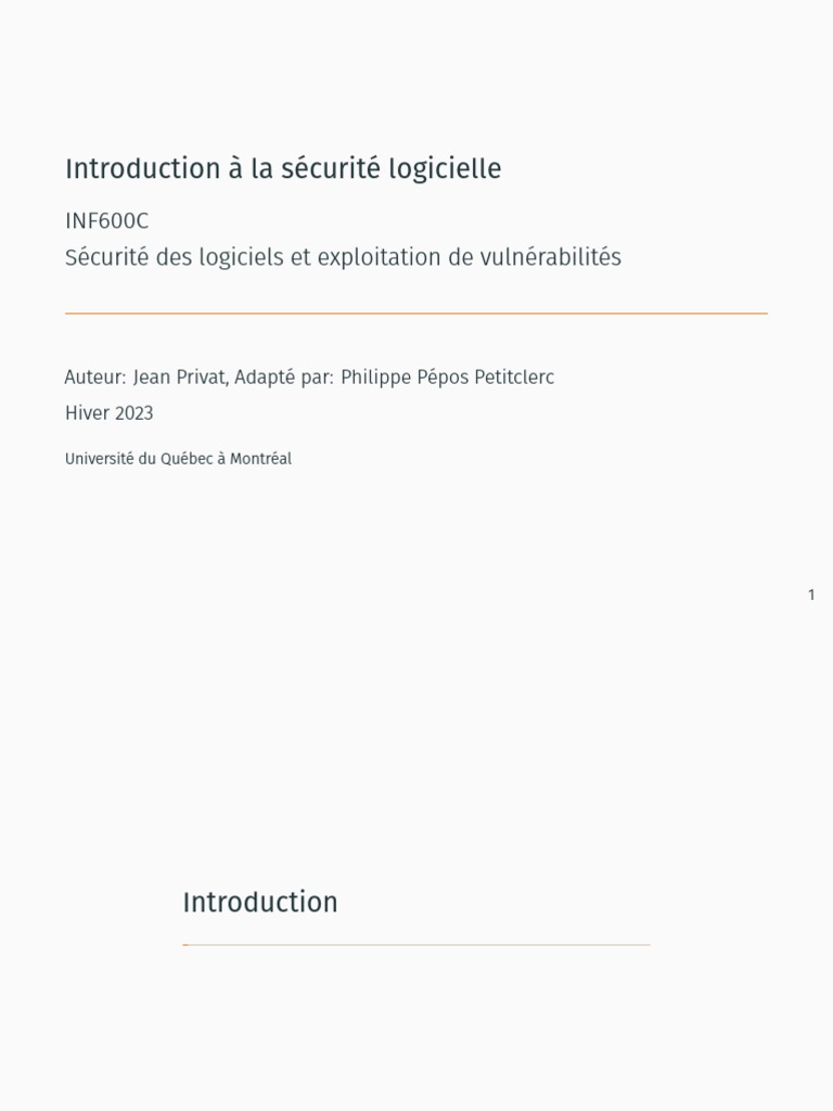 Sécurité Logicielle: Cours Pratique