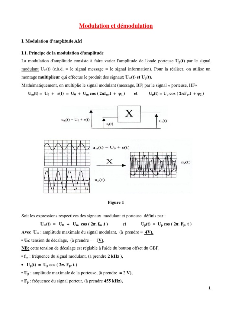 Um(t) = U0 + Um cos ( 2π. fm .t ) et Up(t) = Up cos ( 2π. Fp. t )