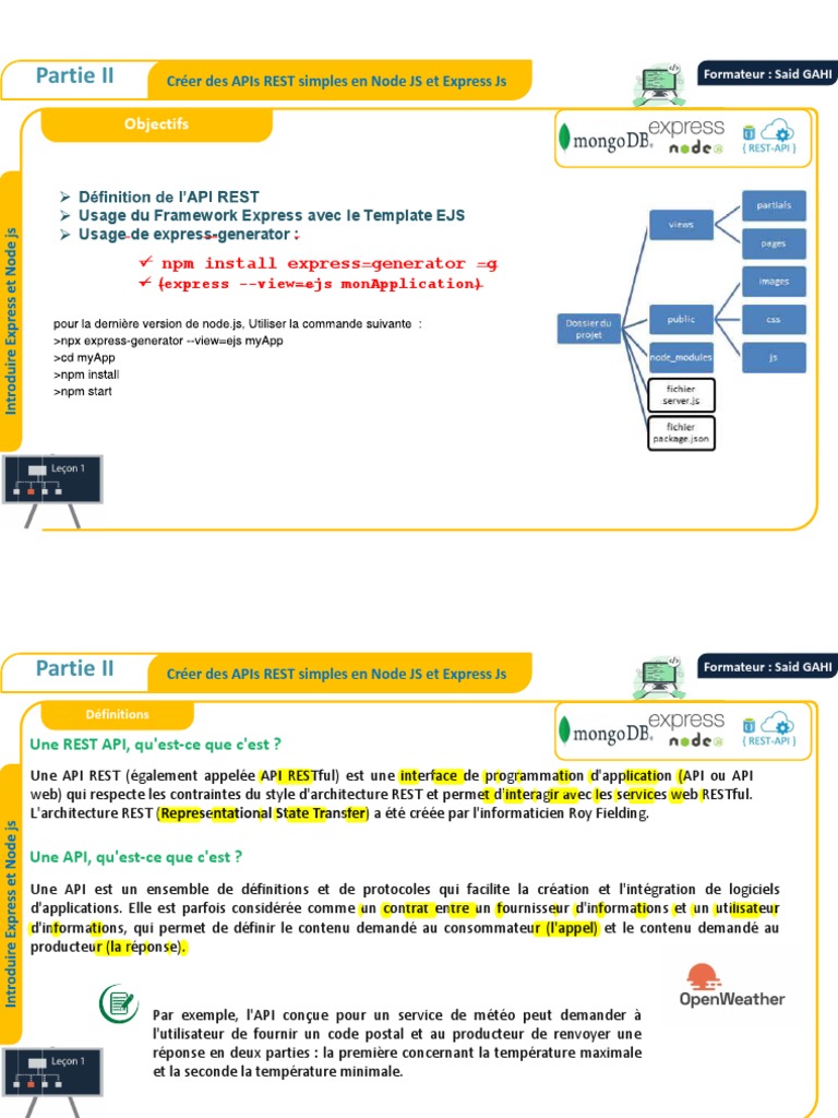 Partie II Créer des APIs REST simples en Node JS et Express Js Formateur : Said GAHI