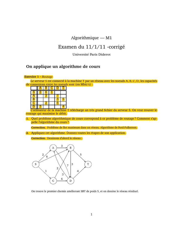 Correction. Problème de flot maximum dans un réseau. Algorithme de Ford-Fulkerson.