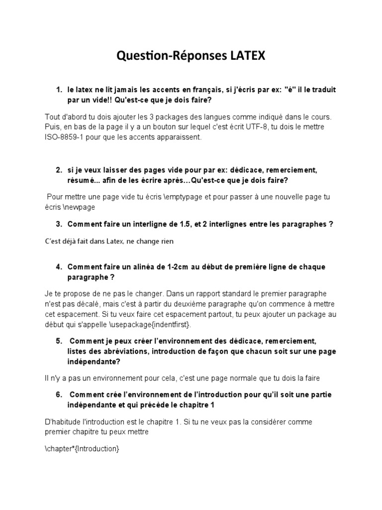 Question-Réponses LATEX