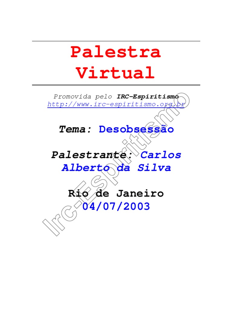 <[moderador]> [2] - <Ahtilante> Trabalhos de desobsessão podem ser