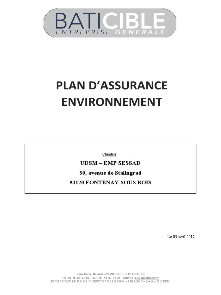 - Au respect de l’ensemble des exigences environnementales (propreté du chantier, bruit, poussières, feu,