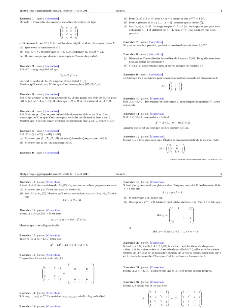 ΩΩ = (In − A)−1 (In + A)(In − A)(In + A)−1 or In + A et In − A commutent (b) Posons r = rg(u1 , . . . , up ) et quitte à permuter les vecteurs (u1 , . . . , up ),
