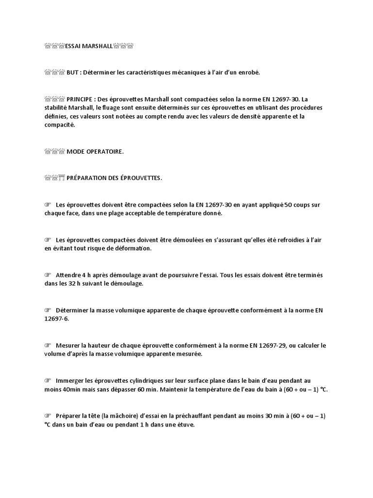 stabilité Marshall, le fluage sont ensuite déterminés sur ces éprouvettes en utilisant des procédures