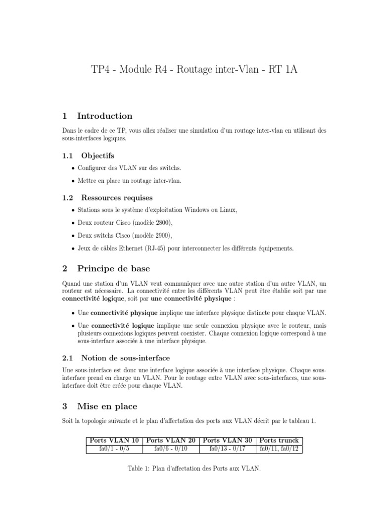Soit la topologie suivante et le plan d’affectation des ports aux VLAN décrit par le tableau 1.