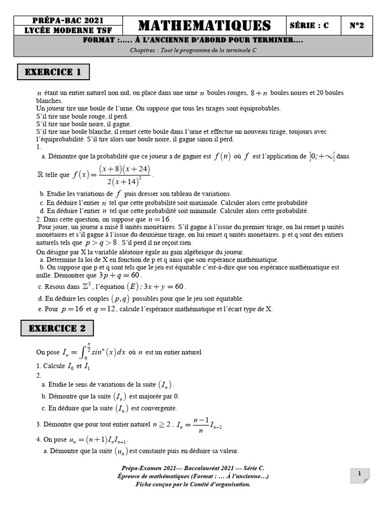 Lycée Moderne TSF MATHEMATIQUES Série : C N°2