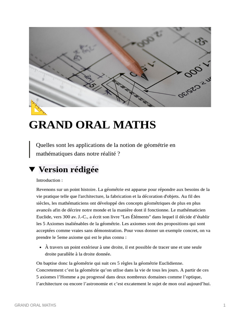 Au cours de cet oral, nous allons voir comment la géométrie Euclidienne s’applique dans