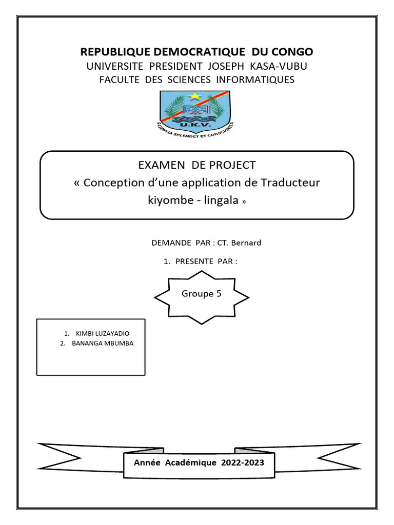 Ce rapport présente une analyse détaillée de l'application de traducteur Kiyombe-