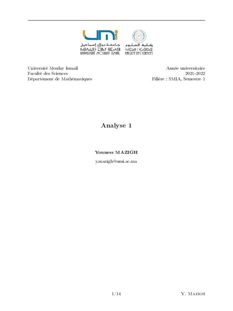 Université Moulay Ismail Année universitaire
