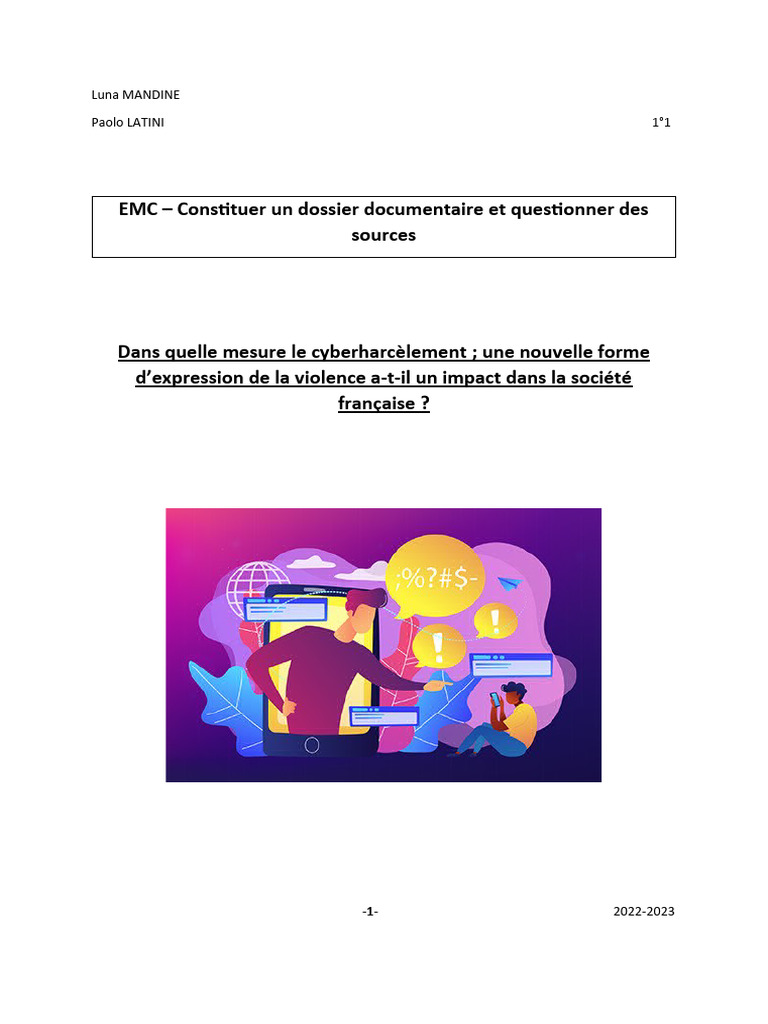 conséquences du harcèlement via les réseaux sociaux. Le second document est
