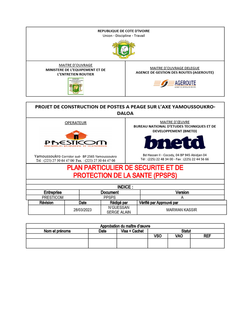 PRESTICOM a rédigé ce Plan Particulier de Sécurité et de Protection de la Santé en vue de préserver
