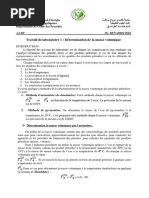 température de 20°C que l'on supposera constante tout au long de la manipulation.