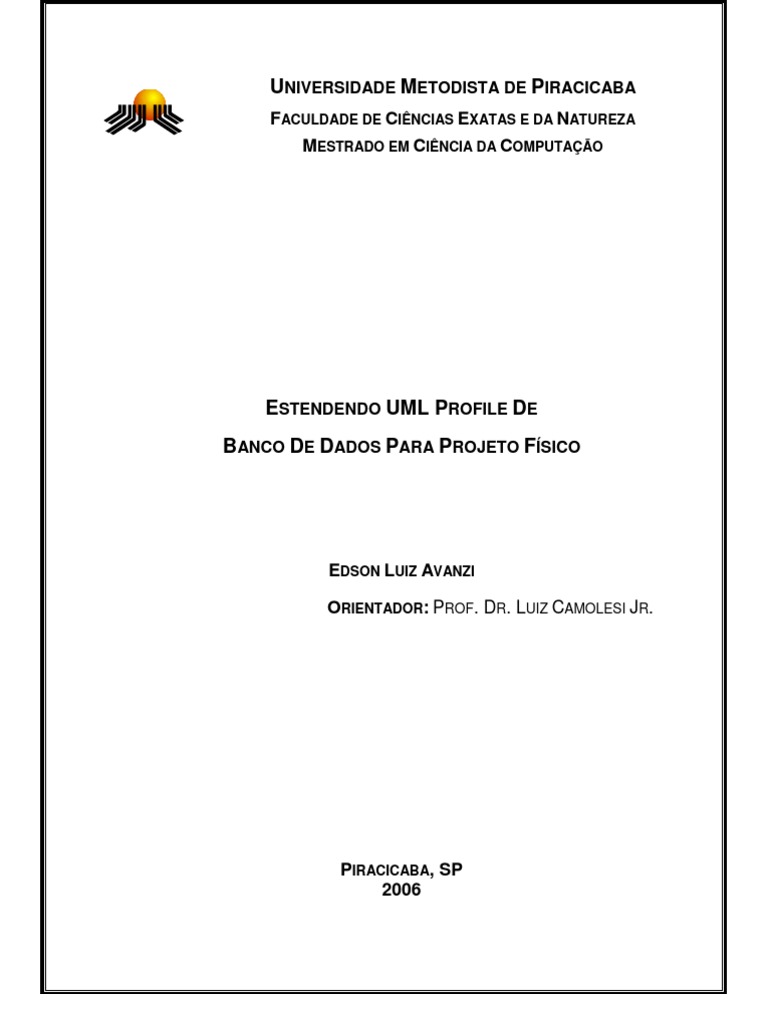 PALAVRAS-CHAVE: Linguagem de Modelagem Unificada, Projeto Fsico de