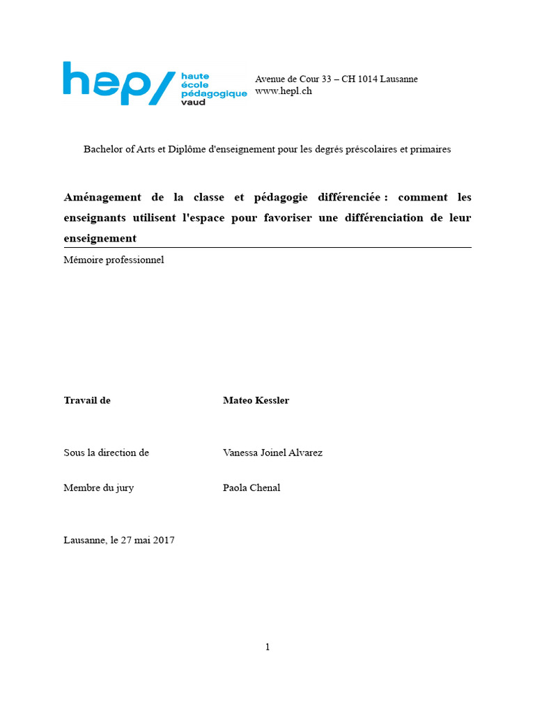 Dans mon travail de mémoire, je m'intéresse aux pratiques différenciatrices et aux liens qui