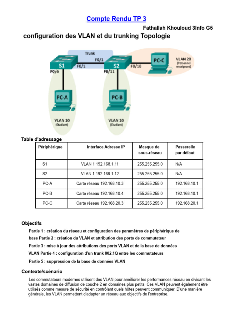 topologie, attribuer les VLAN aux ports d'accès des commutateurs, vérifier que les VLAN fonctionnent