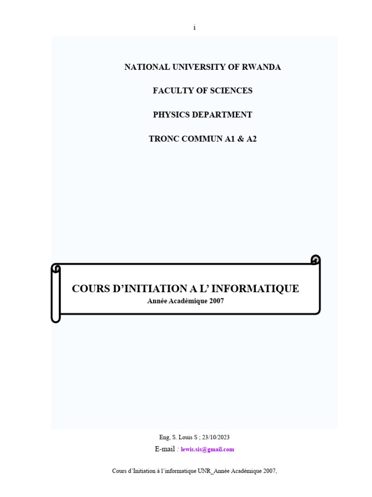 1. CHARLES NDAGIJE, Cours d’initiation à l’informatique, Université