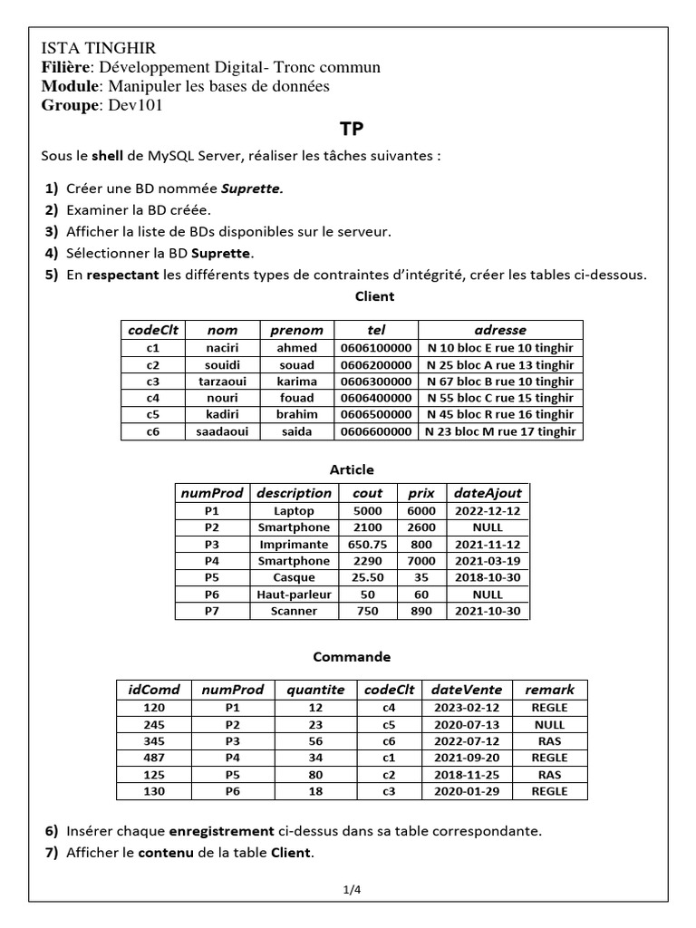 1) Créer une BD nommée Suprette.
