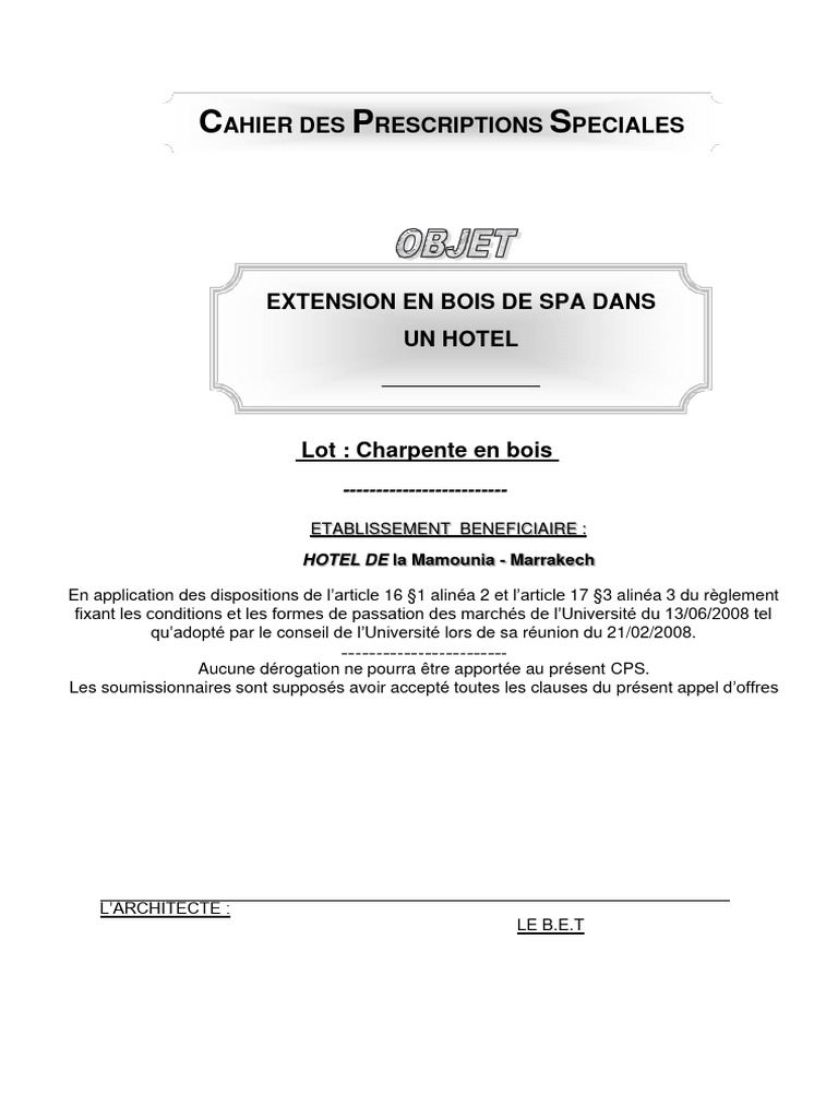 CAHIER DES PRESCRIPTIONS SPECIALES