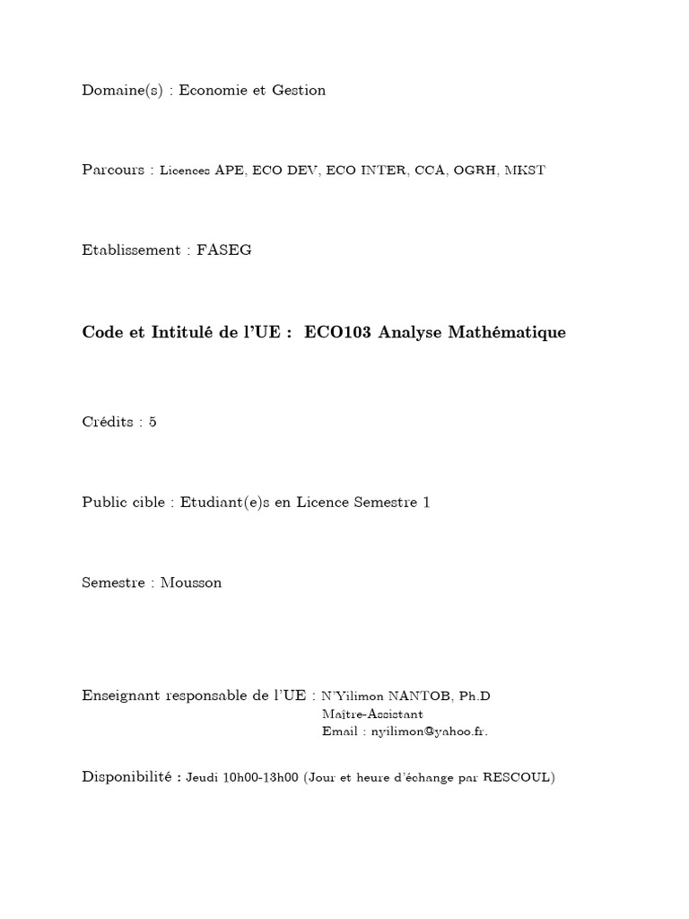 Analyse Mathématique Support de Cours