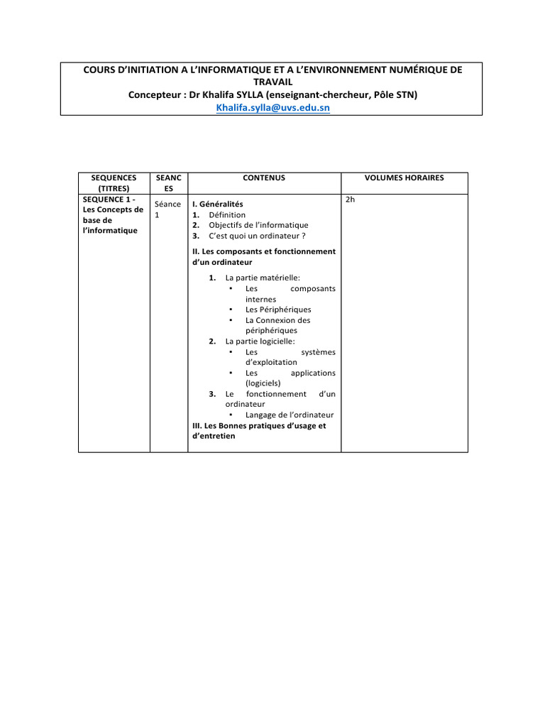 COURS D’INITIATION A L’INFORMATIQUE ET A L’ENVIRONNEMENT NUMÉRIQUE DE