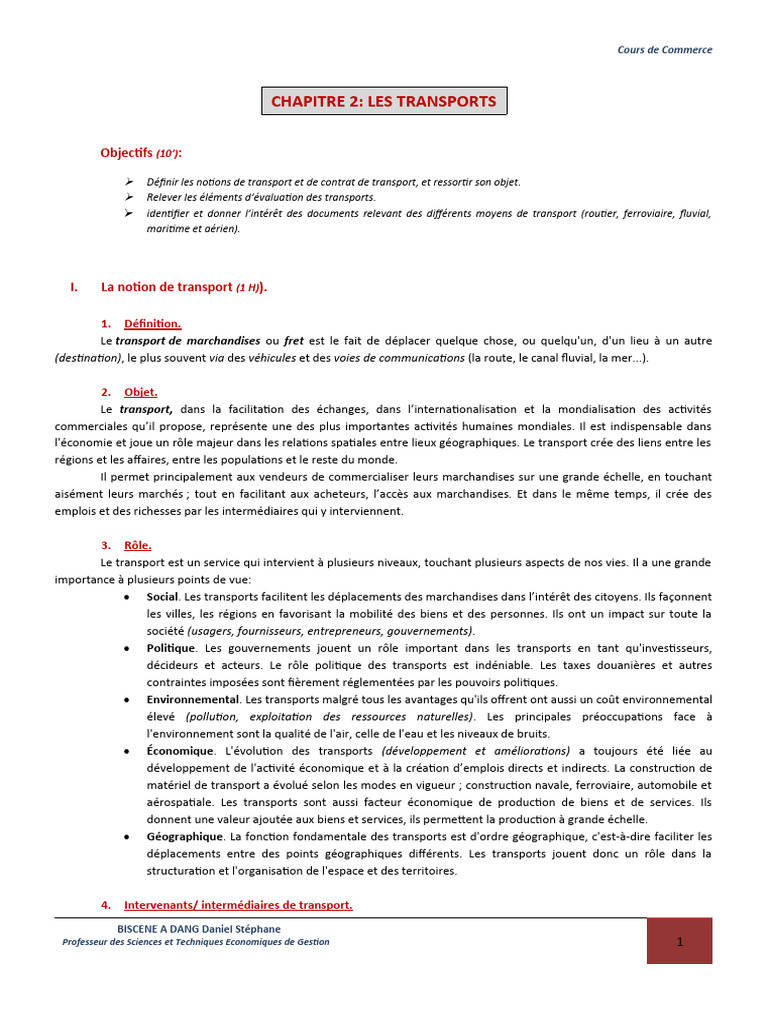 I. La notion de transport (1 H)).