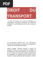 Définir les notions de transport et de contrat de transport, et ressortir son objet.