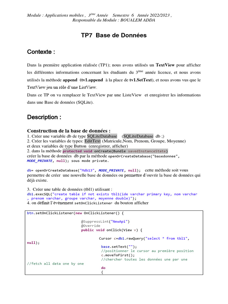 TP7 Base de Données