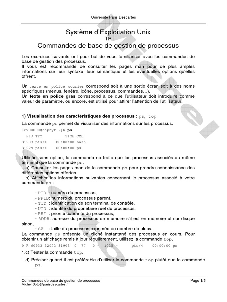 1.a) Consulter les pages man de la commande ps pour prendre connaissance des