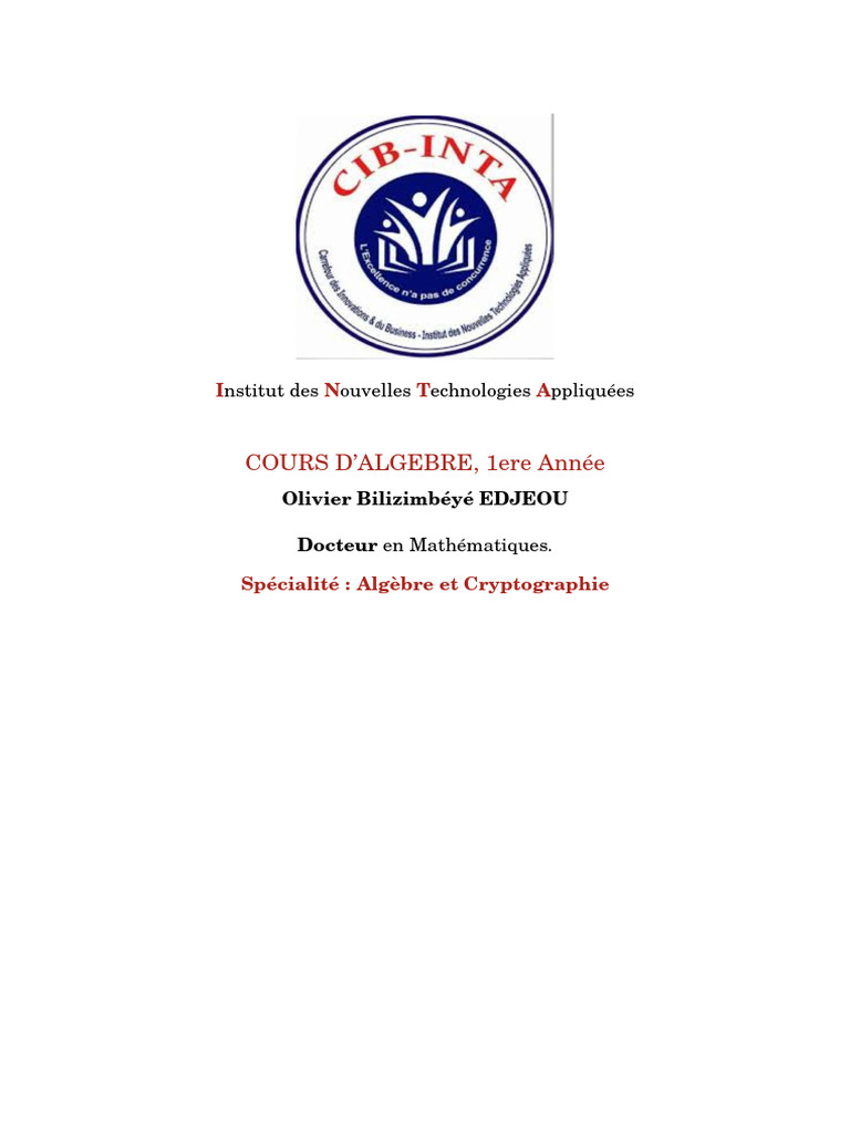 Cours d'Algèbre: Logique et Structures