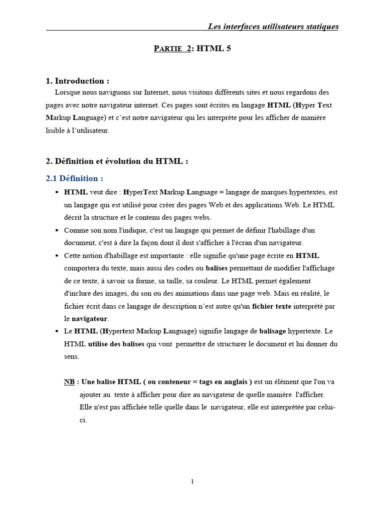 Dans la suite de ce cours, nous utiliserons la version HTML5 qui est actuellement la plus
