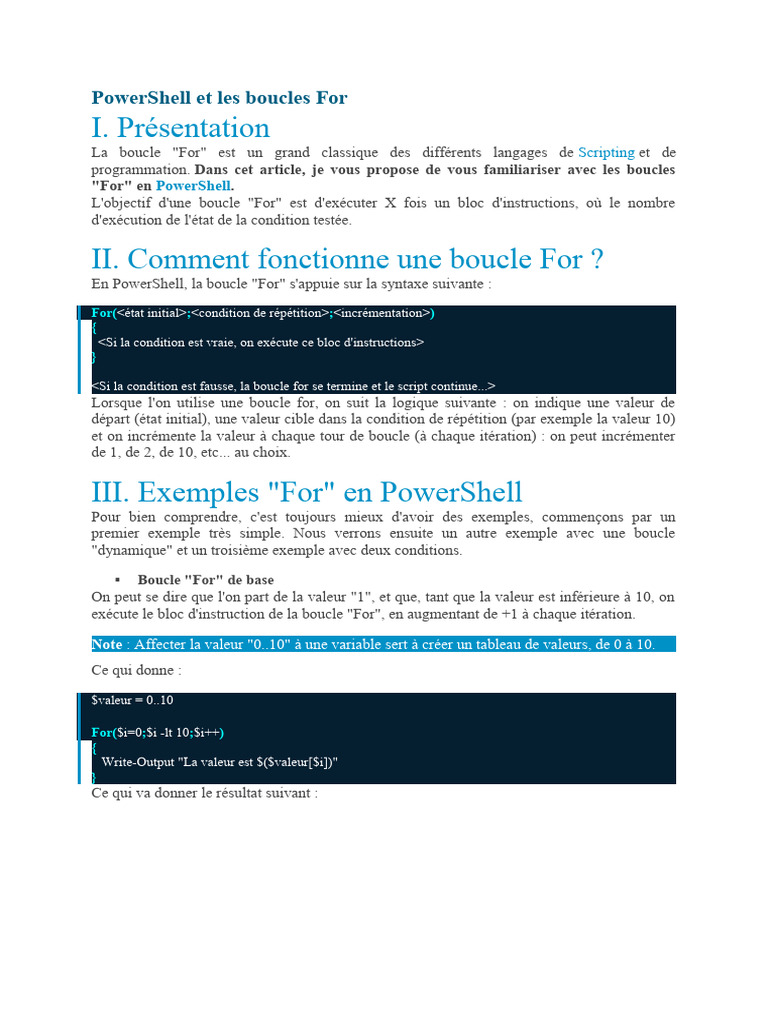 Dans la continuité sur les boucles For en PowerShell, Il est intéressant d'en proposer un