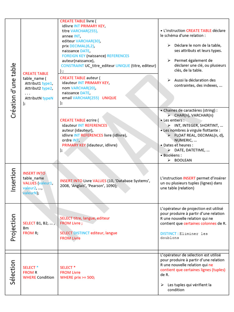table_name ( CREATE TABLE livre ( La fonction
