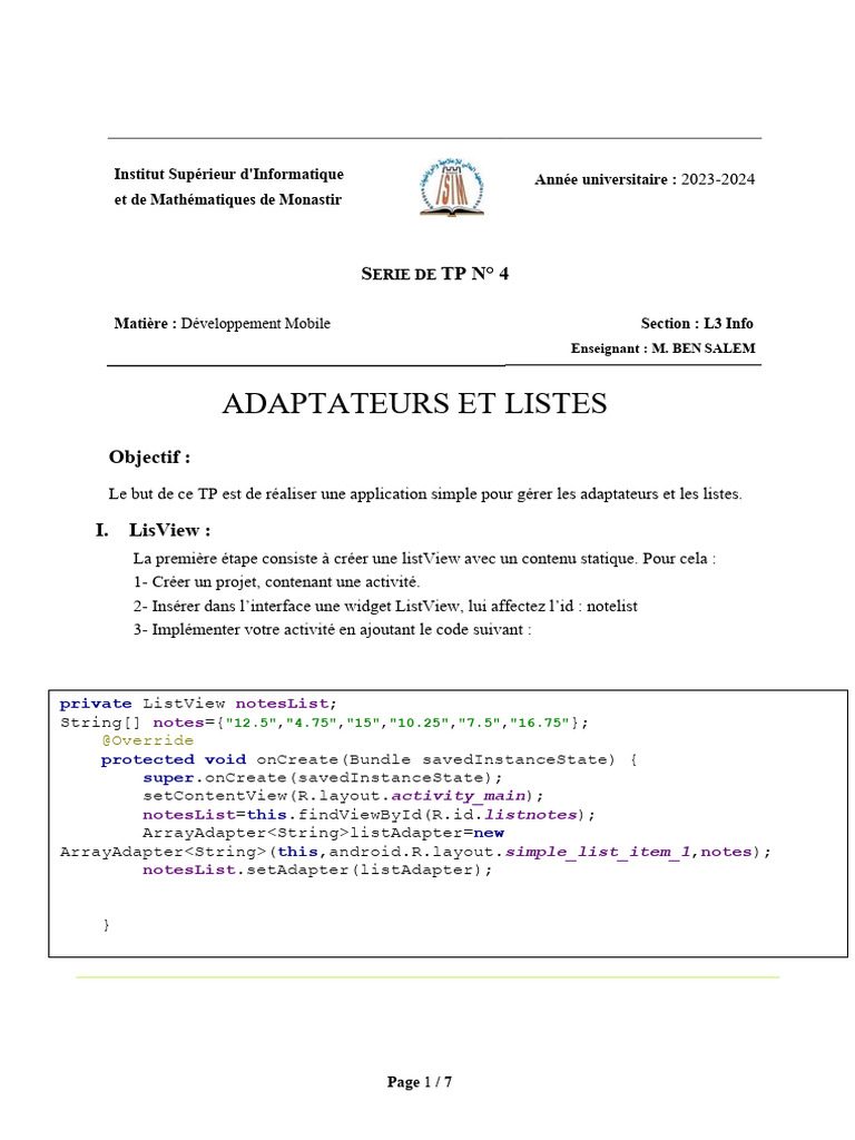 Le but de ce TP est de réaliser une application simple pour gérer les adaptateurs et les listes.