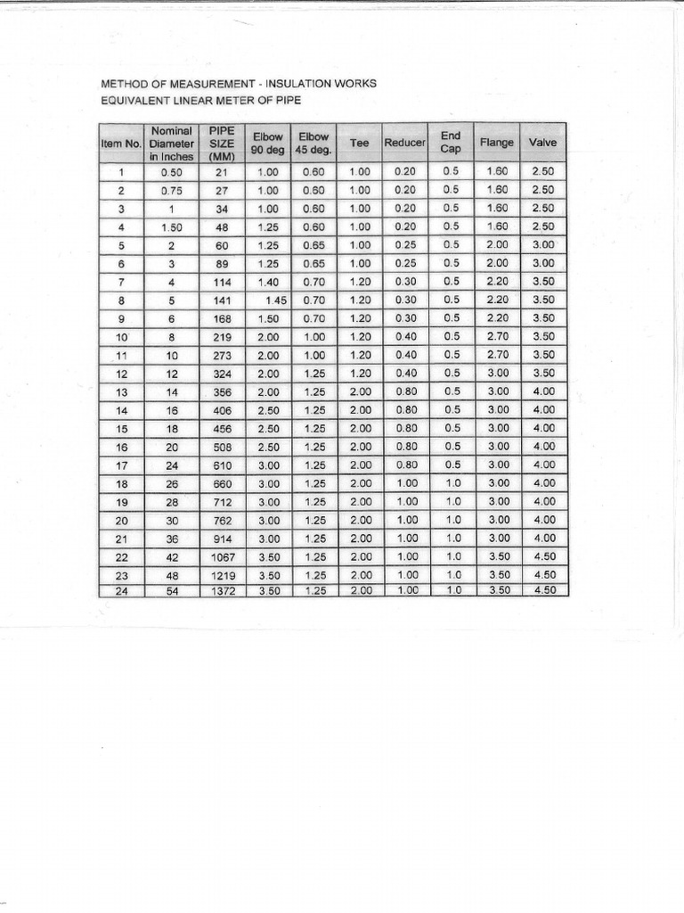 EQUIVALENT LINEAR METER OF PIPE