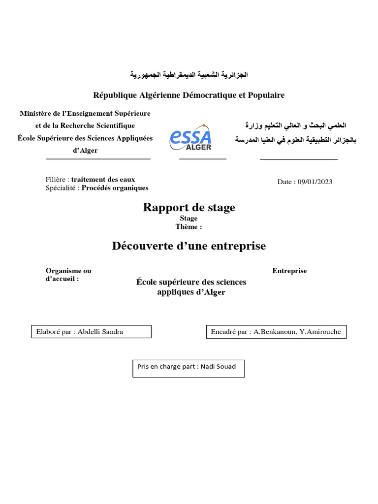 Alger en école supérieure en sciences appliquées. Cette