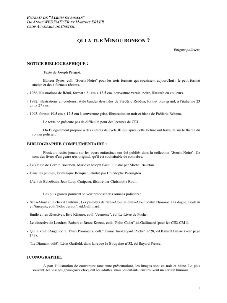 Si on dispose des trois présentations différentes de l'ouvrage Qui a tué Minou-bonbon ?, (toutes trois