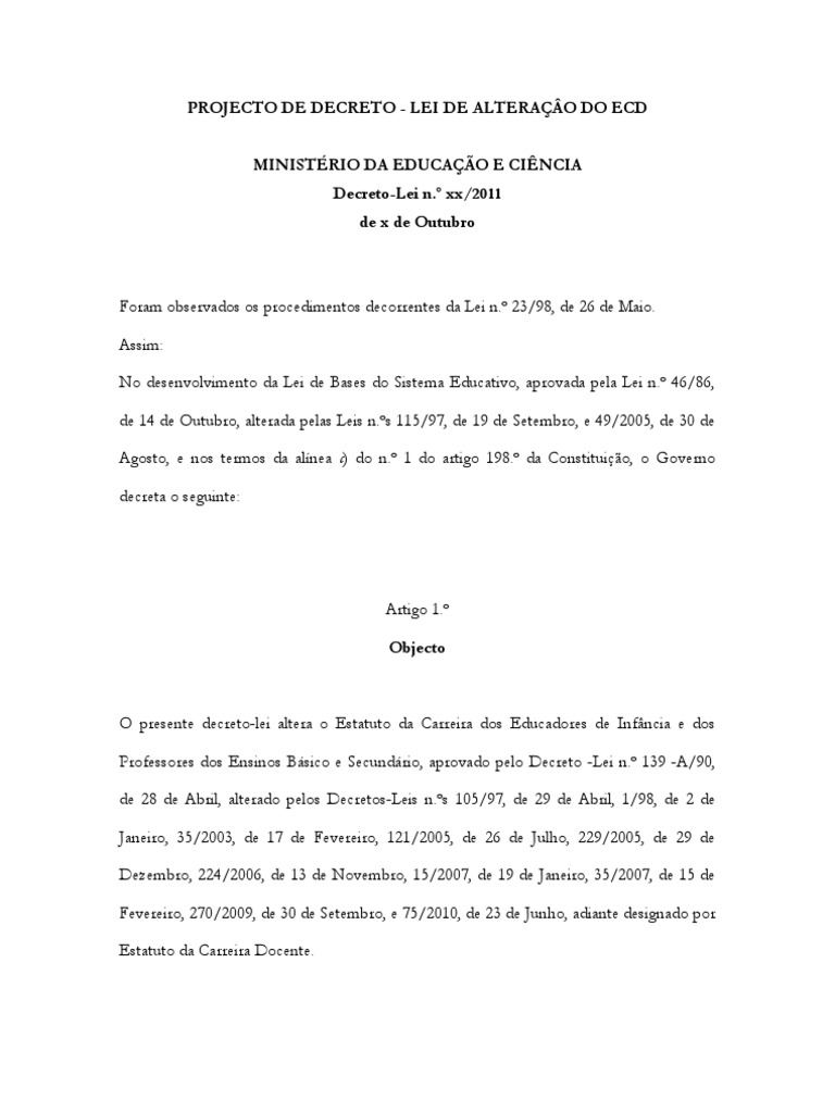 PROJECTO DE DECRETO - LEI DE ALTERAÇÂO DO ECD