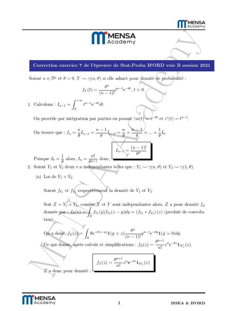 Correction exercice 7 de l’épreuve de Stat-Proba IFORD voie B session 2021