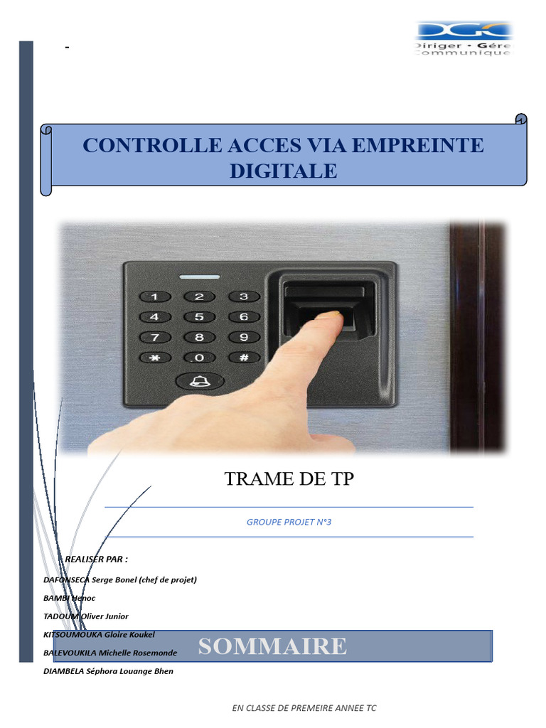 de sécurité : D’où le nom contrôle accès via empreinte digital.