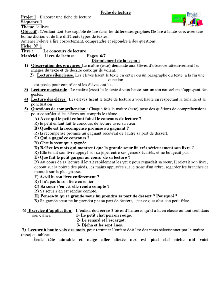 Projet 1 : Elaborer une fiche de lecture