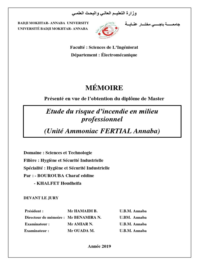 [ZAI 14] : ZAIDI Yazid, analyse du risque incendie (cas unité Ammoniac- FERTIAL),