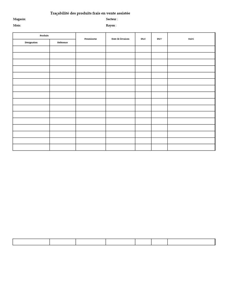 Fiche de contrôledes livraisons des produits frais